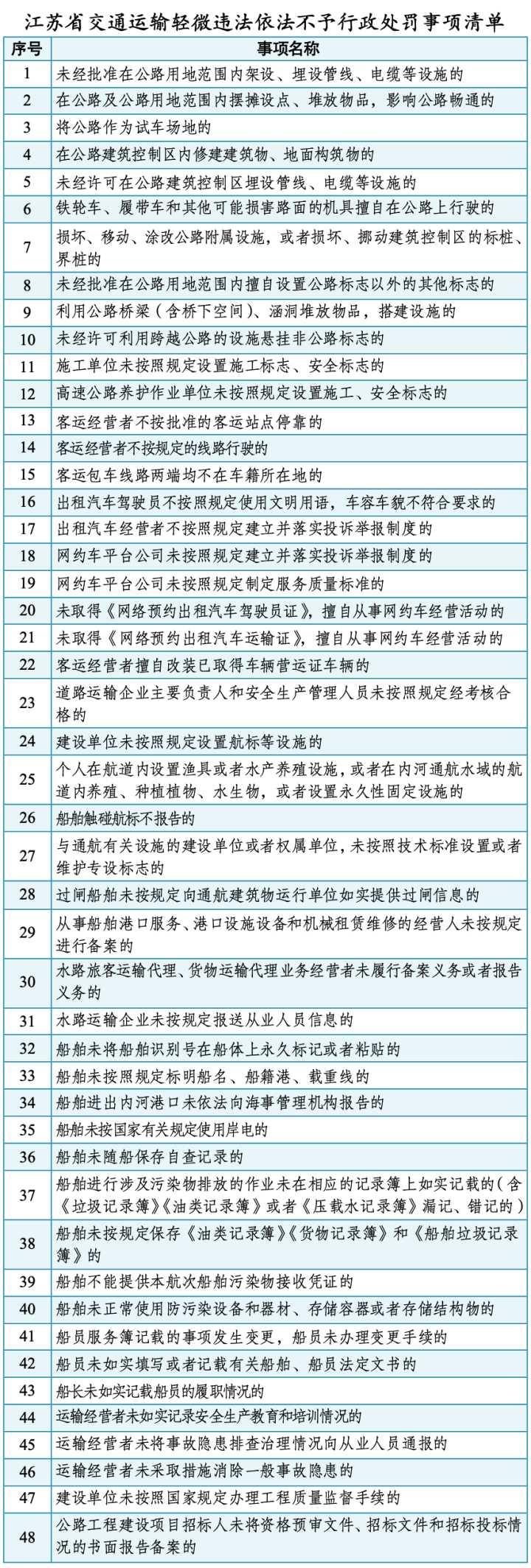 近日,省交通运输厅印发《江苏省交通运输轻微违法依法不予行政处罚事项清单》(以下简称《清单》)大旗策略,《清单》将于2025年12月1日起施行。